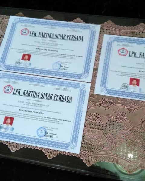 Ijazah milik Rino Setyo Purnomo yang sangat banyak yang tetjtu